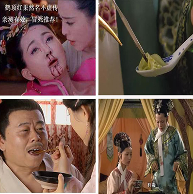 大家大概也在小說和戲劇裡看過《鶴頂紅》,但它其實也不過就是砒霜美艷的別稱。需要注意的是,《鶴頂紅》和《丹頂鶴》除了名字相似之外,是沒有任何關聯。可不要冤枉那美麗的祥瑞之鳥。更需要注意的是,純的砒霜是白色,而不是紅色。如果是紅色,那就是不純的砒霜(天然狀態,有雜質),或根本就不是砒霜。