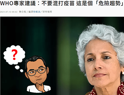 聯合新聞網:WHO專家建議:不要混打疫苗 這是個「危險趨勢」