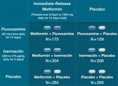 研究論文:Randomized Trial of Metformin, Ivermectin, and Fluvoxamine for Covid-19(用於 Covid-19 的二甲雙胍、伊維菌素和氟伏沙明的隨機試驗)。