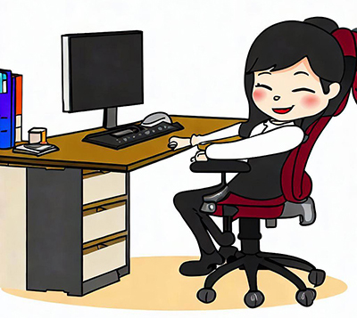 椅子:選擇一把能支撐脊椎的椅子。 調整椅子的高度,使雙腳平放在地板上。 或者使用腳踏板,使大腿與地板平行。 如果椅子有扶手,請調整扶手的位置,讓您的手臂輕輕放在扶手上,肘部靠近身體,肩膀放鬆。