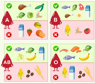 血型飲食是完全基於偽科學。 它聲稱,根據人的血型,食物在體內的耐受性和分解程度不同。 這個飲食法有不同的版本,但一種流行的版本是這樣的: