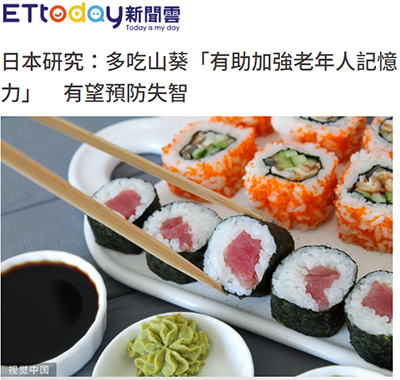 這個連結打開的是《新聞雲》在2023-12-7發表的日本研究:多吃山葵「有助加強老年人記憶力」 有望預防失智,其中·一句話是:「日本東北大學研究人員發現,俗稱哇沙比的山葵有助改善短期與長期記憶,研究結果發表於歐洲期刊《營養素》(Nutrients)。」