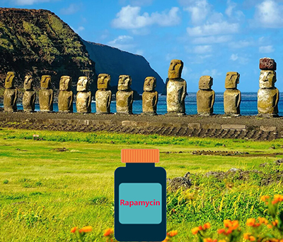 復活節島是舉世聞名,因為它擁有八百多尊充滿神秘色彩的巨型石像。當地的原住民稱呼這個島為Rapa Nui,而Rapamycin就是以Rapa命名的一種抗生素。