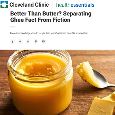 克里夫蘭診所在2021-5-12發表Better Than Butter? Separating Ghee Fact From Fiction(比奶油好嗎?將酥油事實與虛構分開),其結尾是:
