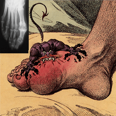 - 較頻繁的衝擊:在我們走路、跳躍、或跑步時大腳趾承擔了我們全身的重量,再加上它常會因為踢到、撞到、或扭到而受到衝擊。實驗室研究顯示飽和尿酸鹽溶液會在被震動時形成結晶,而這就可以解釋為什麼尿酸較容易在受到衝擊的第一蹠趾關節形成結晶。