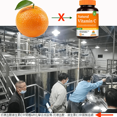 美國消費的維他命 C 有 90% 是中國生產的。而且它肯定不是來自橘子。