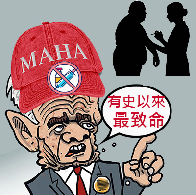 Trump Admits He Got Jabbed With Multiple Vaccines That His Allies Say Are Poison(川普承認自己接種了多種盟友認為是毒藥的疫苗)。其中一段:川普政府的衛生部長羅伯特·F·甘迺迪是一位長期的反疫苗人士和蛇油騙子。甘迺迪經常抨擊新冠疫苗——這些疫苗是在川普第一屆政府的協助下研發的——他稱其為「有史以來最致命的疫苗」。 (迄今為止,據估計,新冠疫苗接種已挽救了近1500萬人的生命。)