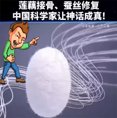 那,這個影片的標題是不是應該要改成「莲藕接骨,蚕丝修复,中国科学家的現代神话」?